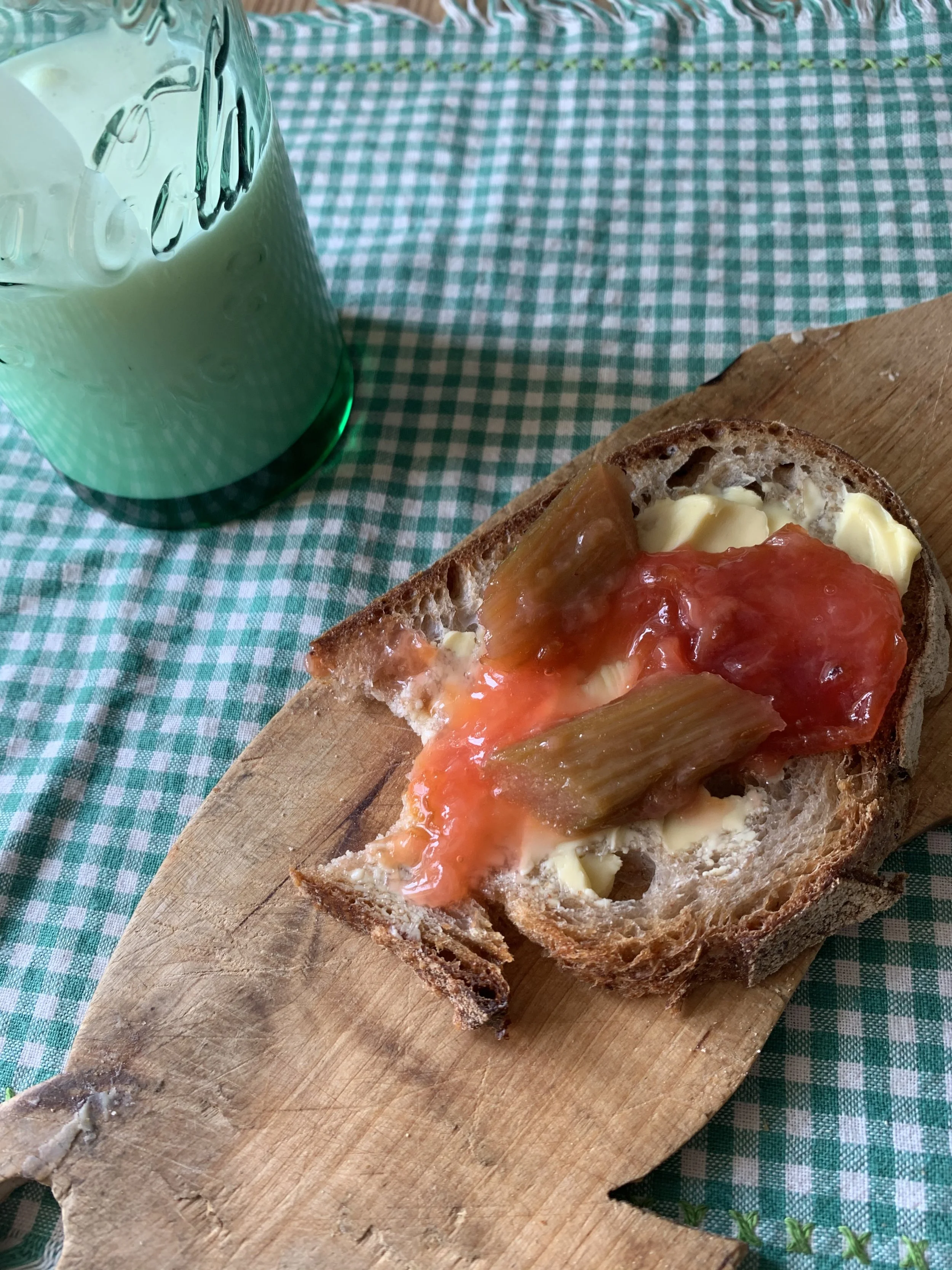 Sponvika , hjemmebakt brød og plommesyltetøy