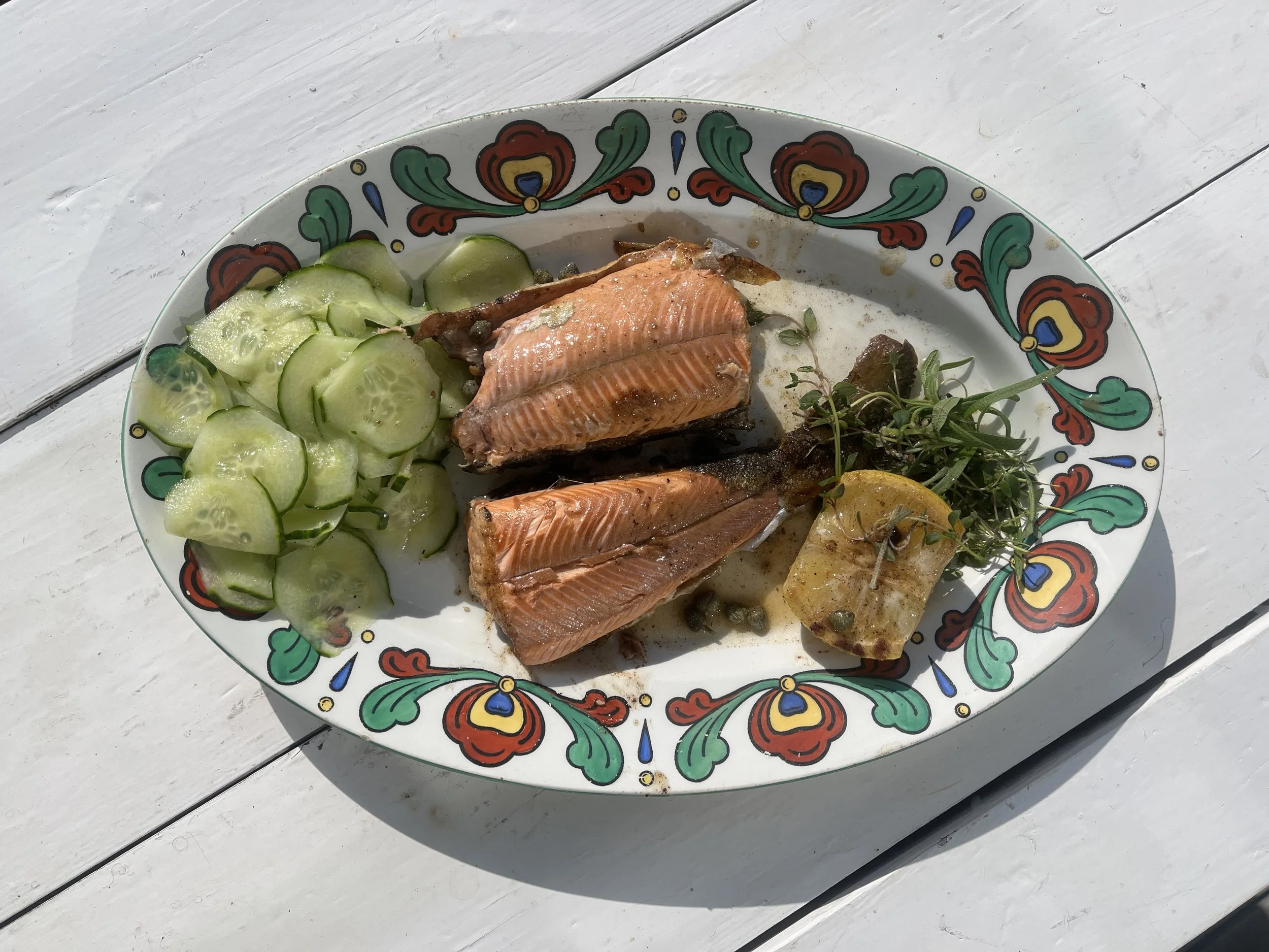 Selvfanget røye på hytta