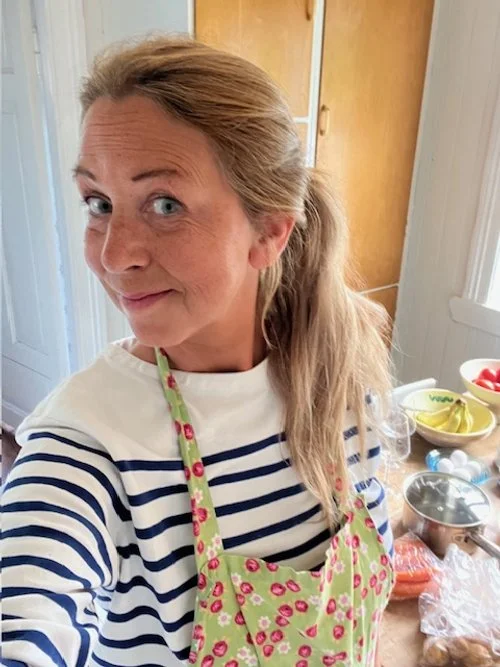Jeg er glad i det gode livet, mat og det som er fint og vakkert. Jeg skriver, jeg koker og jeg går tur med hunden min som heter Hoover. Etter noen tøffe år i næringslivet har jeg lyst til å fokusere på det som er viktig for meg, og dele det med andre. Derfor har jeg startet Kok & bok, for å ringe på døra med hjemmelaget middag og bok til dessert. Hva tror du hadde vært en hyggelig middag jeg kunne hatt med i kurven når jeg ringer på hos deg, eller noen du er glad i?